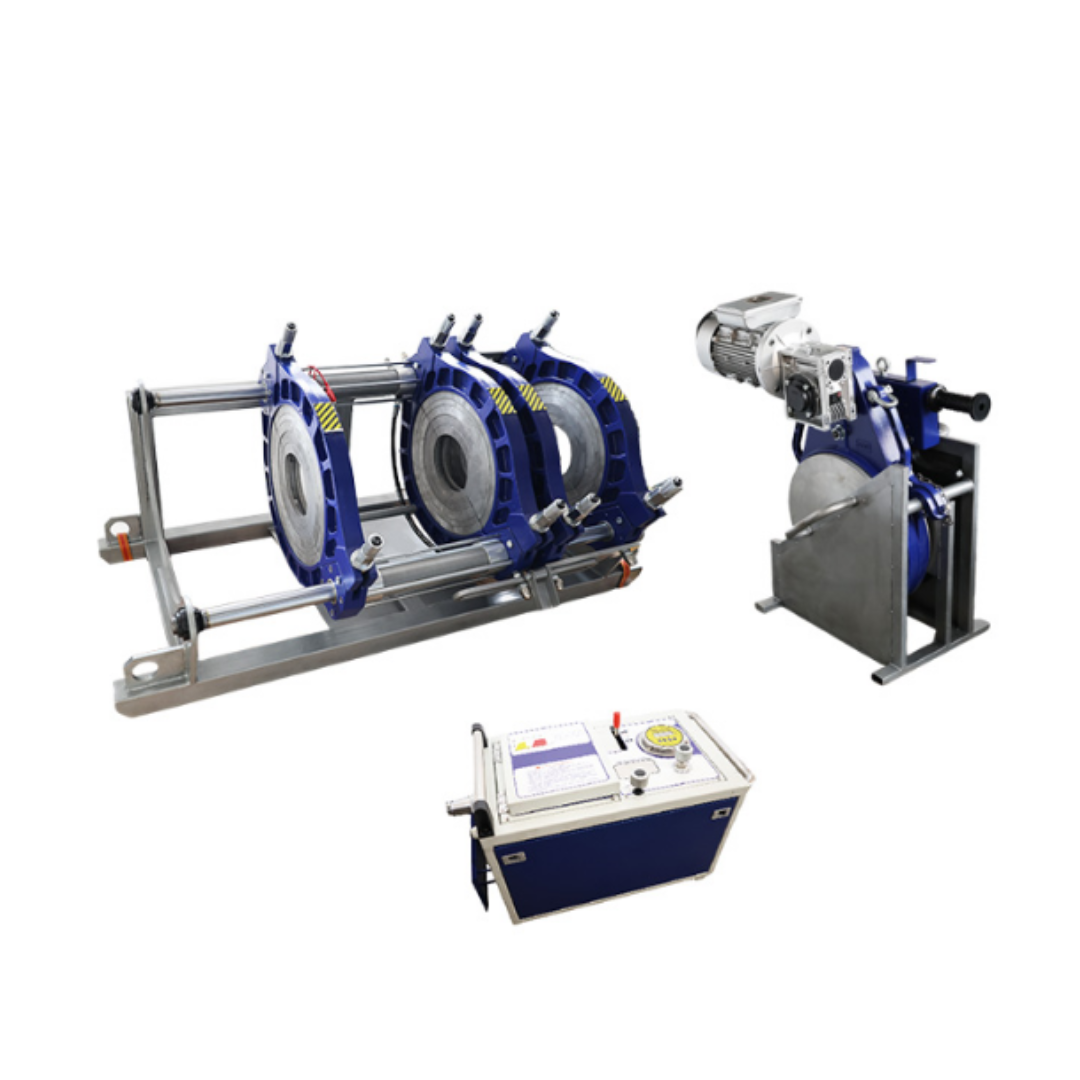 Equipo robusto y preciso para la soldadura por termofusión de tuberías y accesorios de polietileno (PE) de hasta 450mm de diámetro. Incorpora sistema hidráulico para control exacto de presión y alineación, ideal para instalaciones de redes de agua, gas y otras conducciones a presión. Fácil de operar y transportar en obra